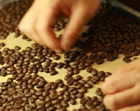 正確な焙煎が出来なければ、いくら良い豆を使い、抽出技術が良くても本当の味にならないのです。花野子ではマスターがコーヒー豆の特徴と味の傾向別にベストポイントを見極めながら、香だ高く、味わい深いコーヒー豆に焼き上げています。 - 4.ハンドピック(2回目)